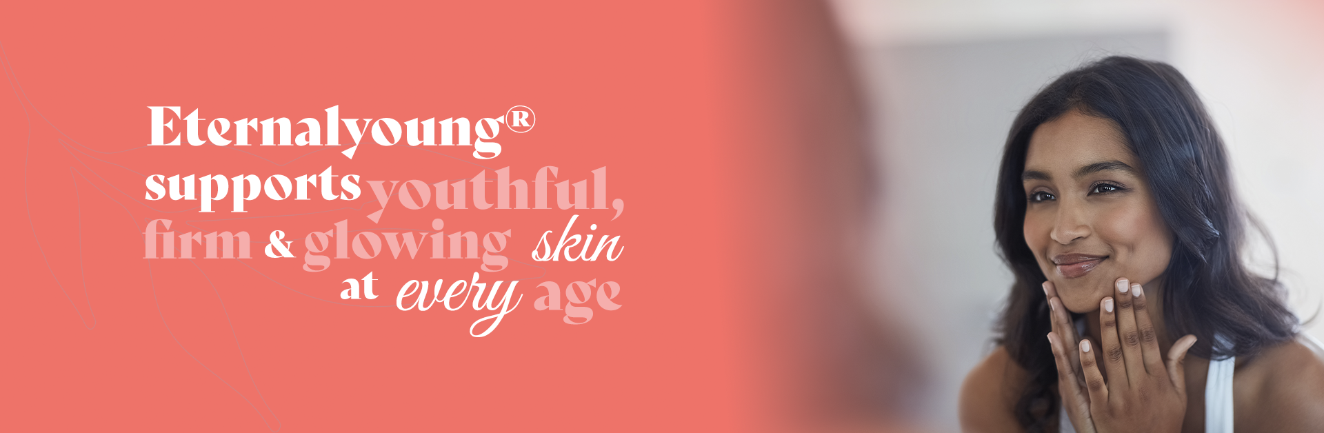 Eternalyoung® is a patented blend that supports skin moisturization, radiance, and elasticity… It provides antioxidant protection that helps the body cope with environmental stressors such as urban pollution, supporting the appearance of healthy skin and scalp.